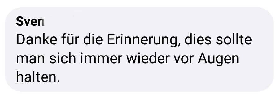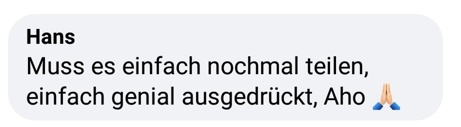 Aus den Begegnungen & Worten nehme ich Kraft, Energie, Achtsamkeit im Umgang mit mir selbst und anderen mit.