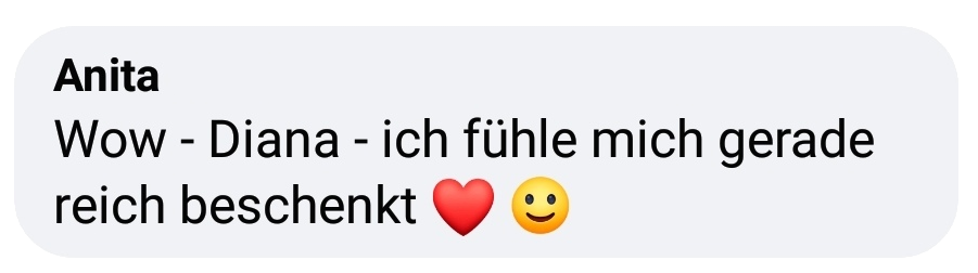 Du gibst sooo unglaublich viel Gutes und hilfreiches für diese „angespannte“ Zeit weiter. Ich möchte dir ein *herzliches Dankeschön* sagen. Ich bin glücklich und dankbar, dich zu kennen. Schön dass, es dich gibt 😘 Danke, Danke 🙏🏻
