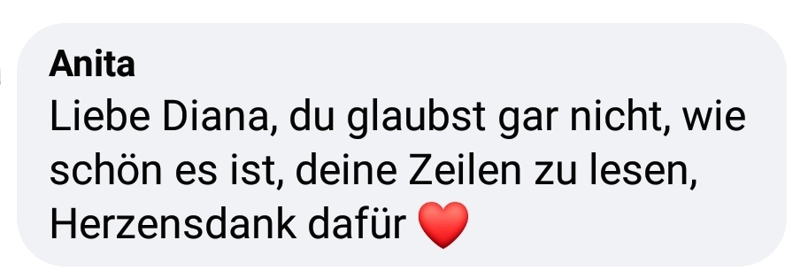 ... danke 🙏🏻 für die schönen Geschichten, tollen Texte, guten Tipps und lieben Worte, die du mit uns teilst. Sie sind für mich Impulsgeber, Inspiration, manchmal Seelentrost und sie helfen mir manchmal einen anderen Blickwinkel einzunehmen.